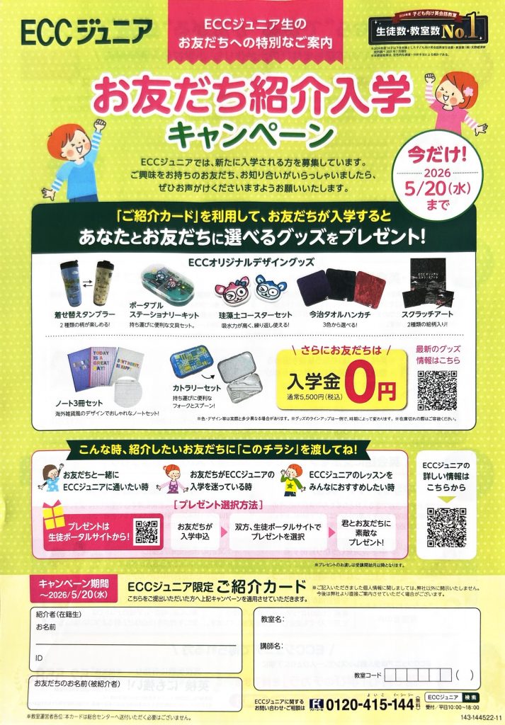 ご紹介カードを使ってお友だちが入学すると…